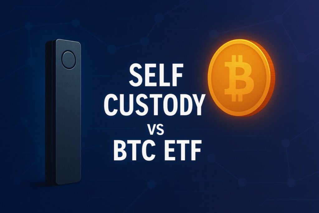 Self-custody or ETF? We compare control, costs, convenience, and risk so you can choose the right way to own Bitcoin. Plain-English and beginner-friendly.